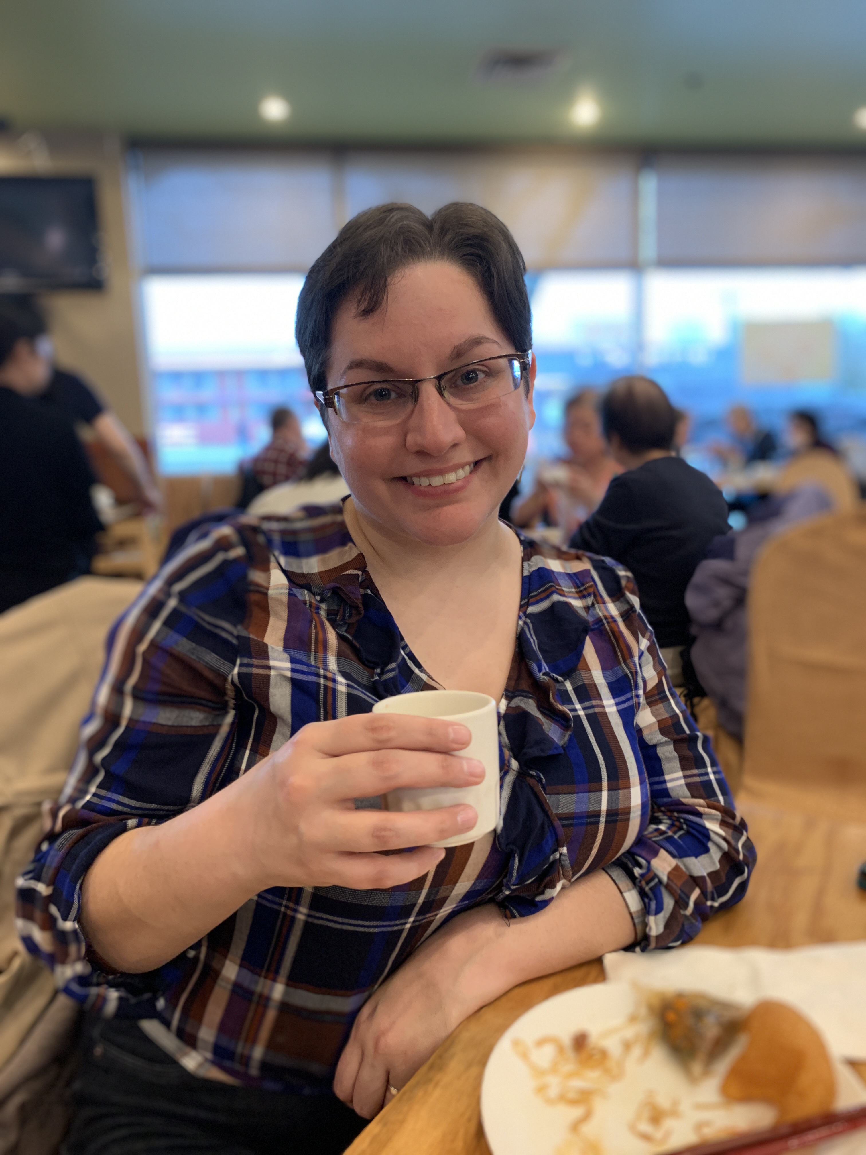 We get shown to a table after a short wait, and carts piled with plates and steambaskets roll past us. Shrimp dumplings, soup dumplings, fried noodles, way more buns than was probably smart for us… but hey- it was a special day.