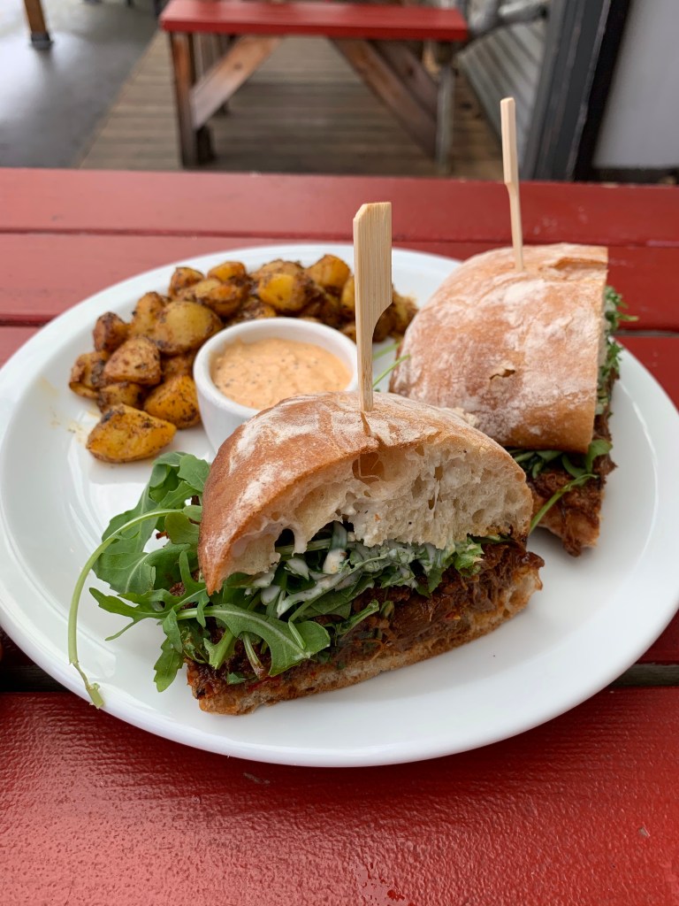 (Yes, take note, dear reader. I, a round-heeled pushover for porters and stouts, ordered a hoppy IPA specifically to pair with this sandwich. You can consider that it’s own endorsement.)