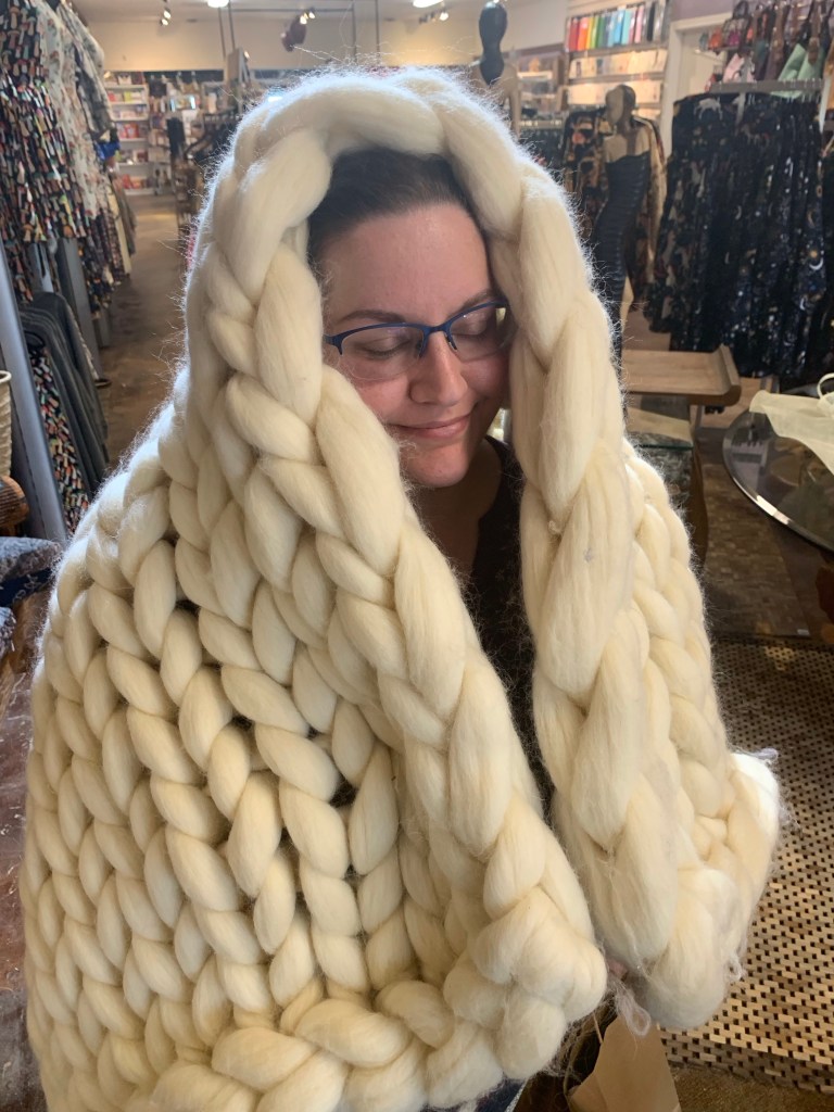 I live in a basement apartment. When snow comes to Portland, it’s not uncommon for our windows to be covered. The fact that we live underground means that we are pretty cool in the summer and stay that way in the winter. Fortunately, Emily and I have similarly hobbit-y sensibilities. We wear warm robes and socks, and thanks to our own tastes, my knitting hobby, and her knitting/quilting Mom, we have no problem bundling ourselves up warm.