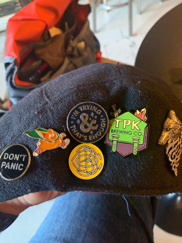 So I seized on to the 12 Days of Gristmas. I seized on to getting a hat pin from every microbrewery I could find that sold them. They go on the same hat that I’ve taken to wearing around town on these one-man bar crawls.