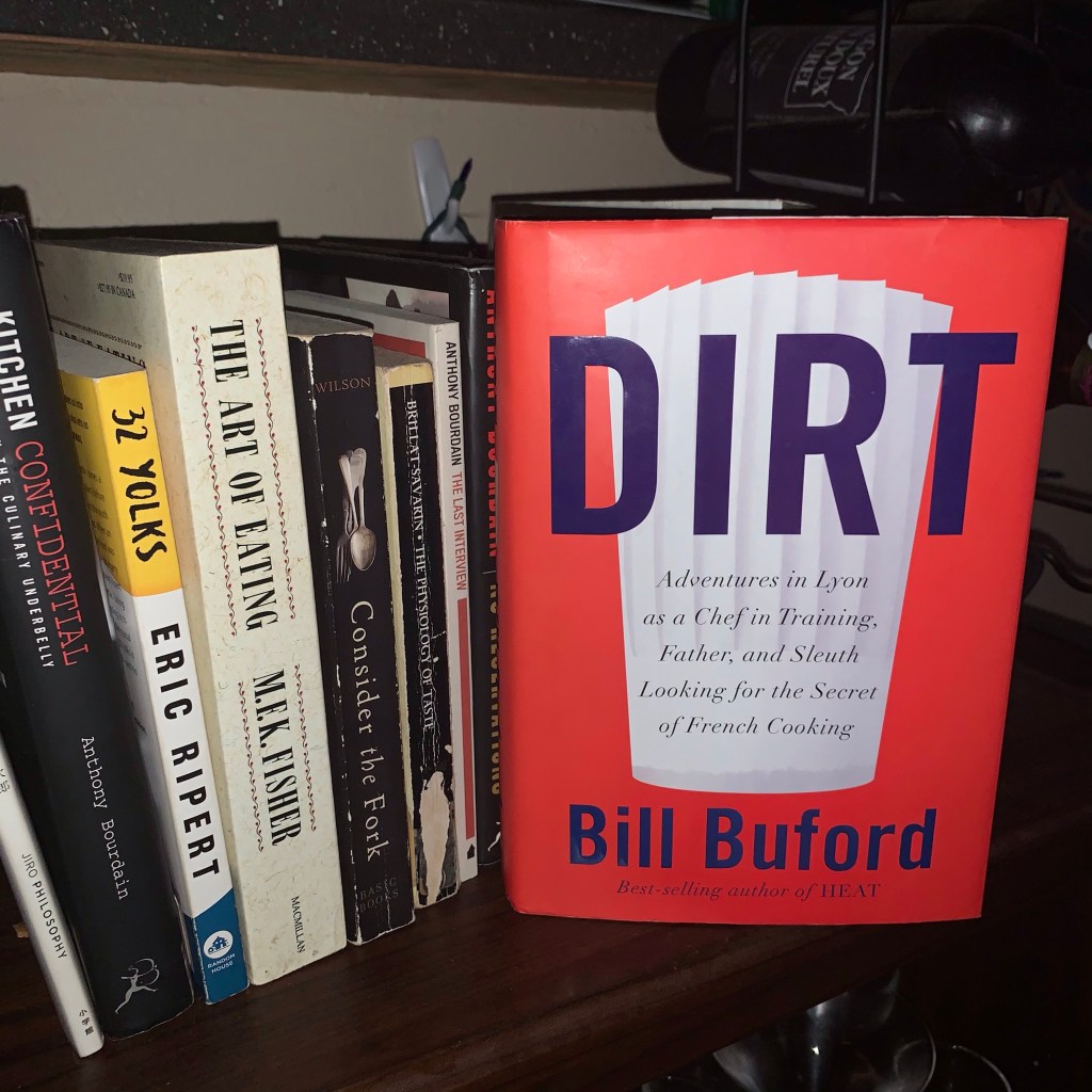 Despite the technology addictions we both deal with, Em and I schlepped a good portion of our respective libraries out West with us and have only added to them in the ten years since. Most of the books we have in the living room are more “professional” material. Atop the bar in my corner is my small library of food writing so it can shame me whenever I crash in my rocking chair and putz around on my phone for hours. Directly behind me is a small bookshelf containing our combined cookbooks except for the two or three that live on the shelf directly above the kitchen counter where Em can reference them easily.