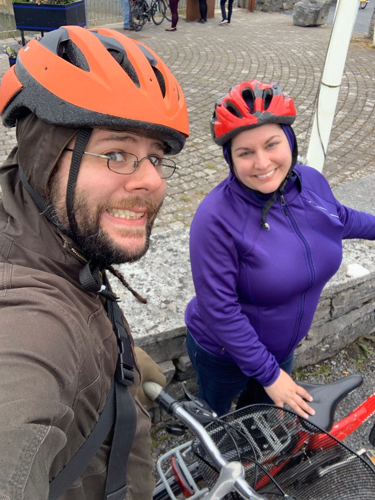 Toward the end of our trip, Emily and I were in Galway and we spent a stormy day on Innishmore, the largest of the Aran Islands in Galway Bay and home to a long and happily-commercialized history of fishing, sheep farming, and knitting. It had been raining nearly constantly since we got to Galway and we were indeed equipped for rain, but being halfway out into the North Atlantic meant the rain was more like a storm. The one small town on the island was cozy, but anything that we wanted to see or do that didn’t involve drinking or buying sweaters meant renting some bikes, rolling through the cliffs and hills, and getting wet.